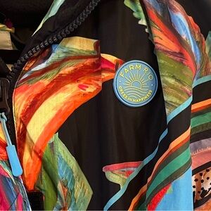 Bold Snow Suit by FARM Rio. Features a dynamic mix of orange, blue, and green tones. Perfect for a standout look.