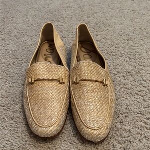 Item: Elegant gold loafers perfect for any occasion. These shoes offer both style and comfort.