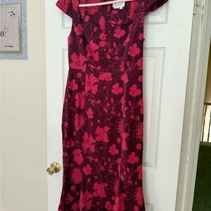 Anthropologie Red and Purple Floral Maxi Dress