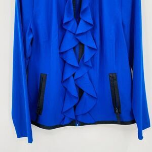 Zenergy Chico's Size 1 Medium Blue Long Sleeve Lightweight Ruffled Zip Up Jacket