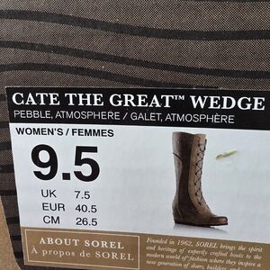 Sorel lace-up boots with a stylish wedge. Gray tones for versatile wear. Perfect for adding flair to your outfit.
