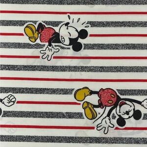 Classic Disney Mickey Mouse twin flat sheet featuring repeating Mickey graphics on red, black, and white striped background ❤️🖤