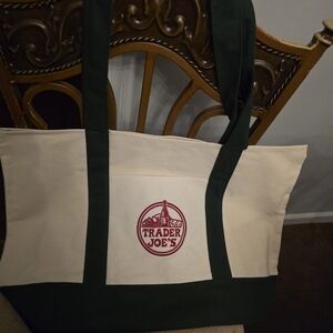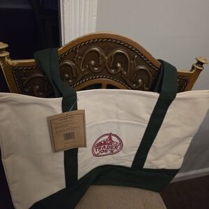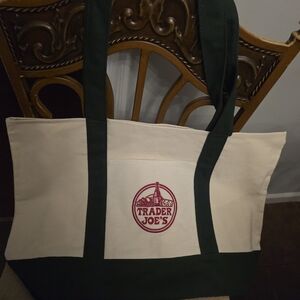 NWT - Large Trader Joes Green and Cream Tote Bag