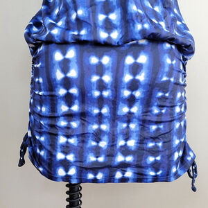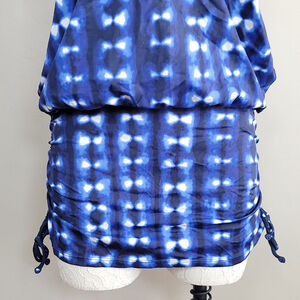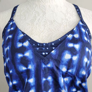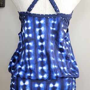 Athleta Mashiko Side Scrunch Tankini Bra Swim Top Dress Blue Dots Tie Dye 36 B/C
