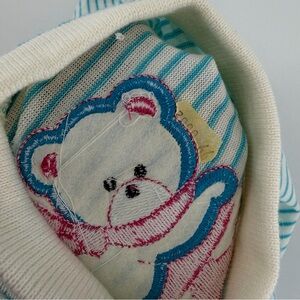 Brand new with tags, small discoloration next to bear's head due to interior tag - see photos