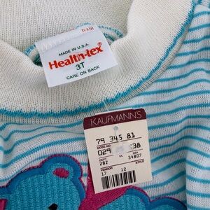 Vintage 80s 90s Health-Tex Bear on Sled Blue White Striped Dress, NWT, Girls 3T