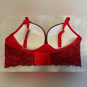 Elevate your wardrobe with this chic scarlet lace bra. Designed for both comfort and allure, it's a perfect addition to any outfit. With push up and removable straps for a versatile and flattering look!