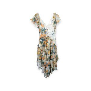 Anthropologie Floral Asymmetric Midi Dress With Lace Details Size 4 Multicolor Lightweight Boho