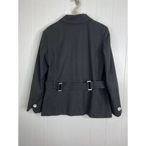 Bogner Black Button Down Blazer/Coat Faux Waist Belt Front Pockets Size 10/40