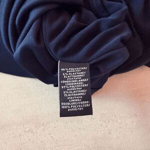 American Living Ruffled Sheath Midi Dress Navy Blue 6 Sleeve Elegant Boat Neck