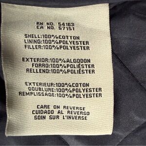 • Size: Men’s Medium• Color: Navy• Style code: ALJG17006• Shell: 100% Cotton• Lining/Fill: Polyester• Closure: Zip front with snaps• Pockets: Two hand pockets• Era: Modern (2010s)