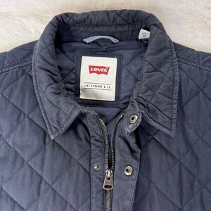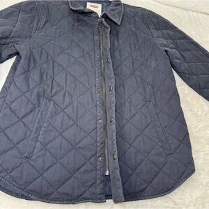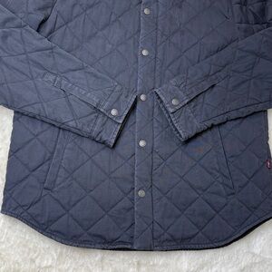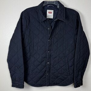 Levis Quilted Shirt Jacket Men Medium Navy Zip Snap Barn Coat Shacket Cotton