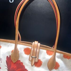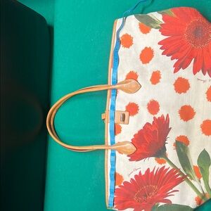 Dooney & Bourke Red Floral Tote with Tan Accents