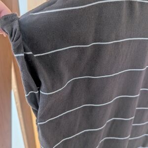 Stylish charcoal ( very faint olive ) tshirt dress with subtle white accents. Perfect for casual outings.