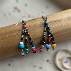 New without tags, colorful, glass bead, dangle earrings. From Guadalajara Mexico. Artisan. Handmade.