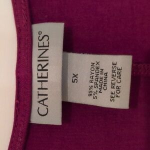 Beautiful Catherine's Wine Colored Sleeveless Maxi Dress. Gathered front waistline and scoop front neckline. 95% Rayon/ 5% Spandex. Machine washable cold gentle cycle. Material is stretchy. Armpit to waist side = 8". Waist = 48" without stretch. Back neckline to bottom= 53".
