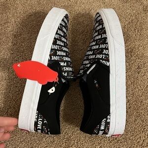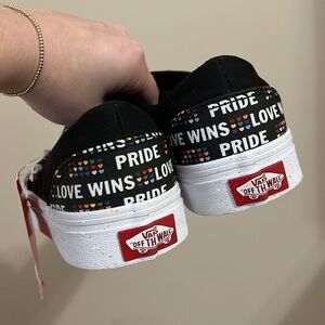 NWT Vans Pride Love Wins Slip On Asher Black Rainbow Glitter Sneakers
