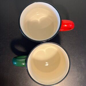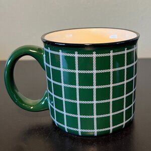 Set of 2 HALLMARK Red and Green Enamel Look Camping Style Checked Ceramic Mugs