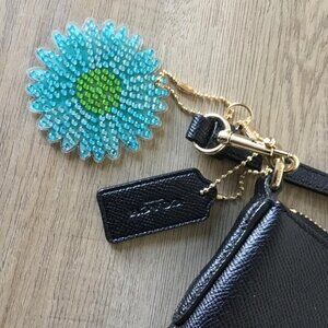Coach Kitt Messenger Crossbody Bag Black Crossgrain Leather w/Zip Closure and Aqua Beaded Charm