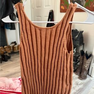 Chic terracotta ribbed top with button-front. Ideal for everyday style.