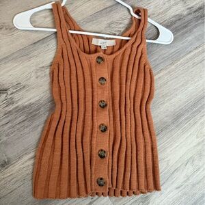 LOFT Terracotta Ribbed Button-Front Top