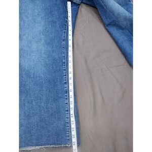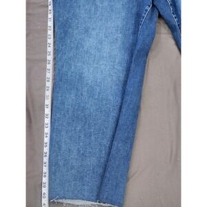 Good American Always Fits Good Legs Crop Mini Boot jeans in Indigo696 offer a versatile mid-rise silhouette with a gap-proof waistband. These cropped bootcut jeans feature a raw, frayed hem and a classic five-pocket design with reinforced belt loops. Designed with a skinny fit through the hip and thigh that transitions into a mini boot leg, they provide a flattering, flexible fit.