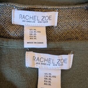 Rachel Zoe XL Olive Plaid Layered Cardigan Attached Shirt Sweater