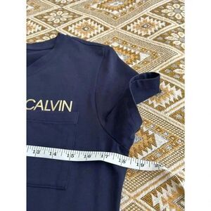 Calvin Klein T-shirt dress. Chest pocket. Navy blue with gold metallic logo.