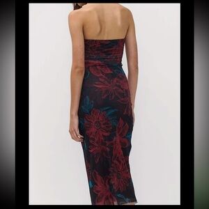 NEW CCB Strapless Tube Black Floral Mesh Bodycon Bandage Lined Maxi Dress Small