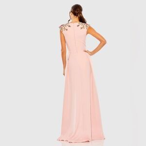 MAC DUGGAL 26540 Pink Beaded Cap Sleeve V Neck A Line Gown Dress