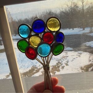 VTG TIFFANY STYLE STAINED GLASS TEN BALLOON SUNCATCHER COLORFUL
