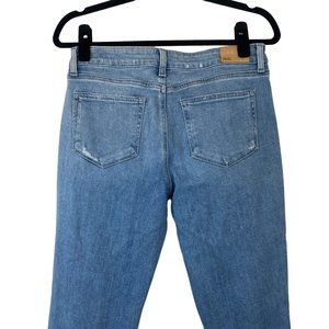Stylish light blue jeans. Distressed knee design. Comfortable fit. The knees are pretty blown out but still a great pair of jeans.