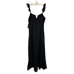 Lulus Eyelet High-Low Maxi Dress Size M Black Ruffles Smocked Back Boho NEW