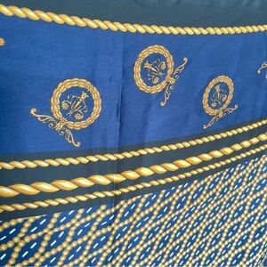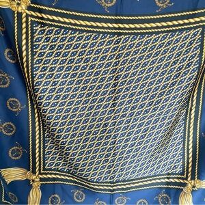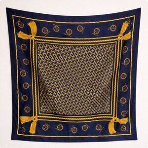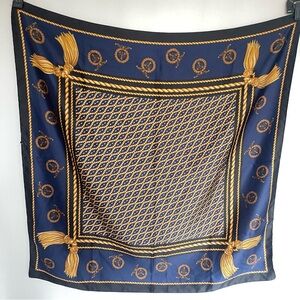 Vintage Berkshire Made in Italy Scarf | Navy Gold Tassel Print Square