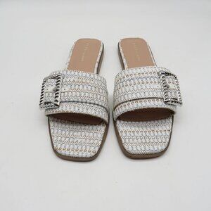 Bcbgeneration White Silver Woven Slide Sandals With Buckle 10M NEW
