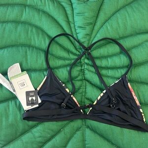 Brand new, never washed or worn, NWT Ripcurl Sol seeker cross back triangle bikini top. Black with orange floral and palm print. Size S.