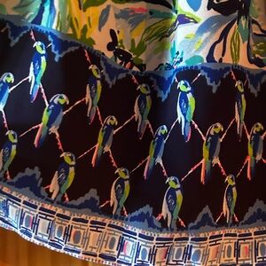 This relaxed blouse by Lilly Pulitzer features a smocked design in vibrant blue and green hues. The long sleeves and airy fabric make it perfect for a casual day out or a resort getaway. Its elegant style is enhanced by the intricate smocking detail, offering both comfort and sophistication.