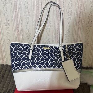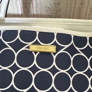 Nine West Navy and White Circle Pattern Tote