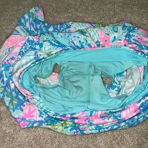 Vibrant mini skirt by Lilly Pulitzer. Features a lively mix of pink, blue, and green. Perfect for a fun, stylish look.