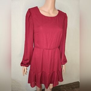 Altar’d State Burgundy Dress Large. Long Sleeve Boho Flowy
