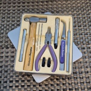 Making Memories grommet eyelet tool kit in metal case. It is used for adding professional looking grommets and eyelets to various craft projects like scrapbooking. card making and paper crafts.