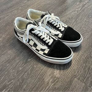 “Mix Checker” by Vans Old Skool in Black and True White. Men’s size 7.5, Women’s size 9.