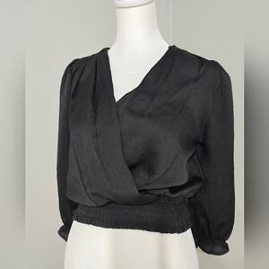 🤩Host Pick❤️NWT Monteau Los Angeles Black Wrap Crop Top Women's Size Small