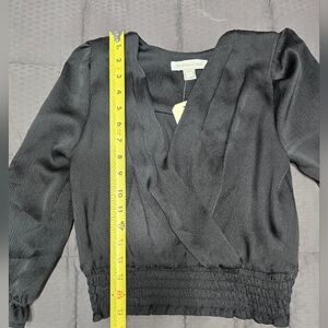 NWT Monteau Los Angeles Black Wrap Crop Top Women's Size Small. Measurements are shown in the pictures. The tags also shown in the pictures detail the shirt. Smoke-free and pet-free home.