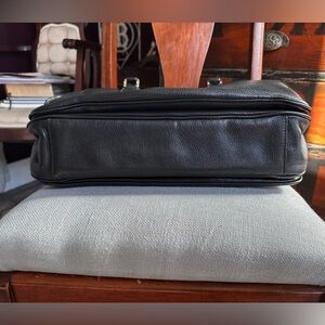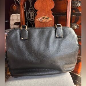 Elevate your style with this chic black leather satchel, featuring a stylish tassel accent. EUC, had lots of storage space, 3 zip big compartments, gold tone hardware. Minimal corner rub.