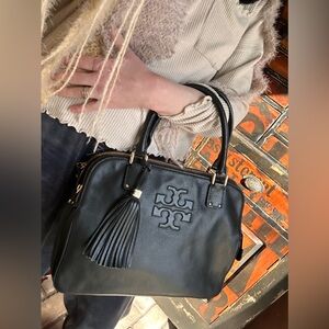 Tory Burch Black Leather Satchel with Tassel