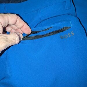 Elevate your style with these vibrant blue performances dress pants from Boss. Perfect for casual or smart-casual wear. Size 34W x 30L purchased in January and only go to wear twice and it's too big for me now.