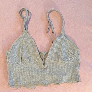 Light gray bralette with delicate lace trim. Soft ribbed texture. Comfortable and stylish.