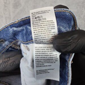 Design details: Zip fly with button closure, belt loops, classic five-pocket styling including coin pocket, logo patch at back waistband, and stitched AMERICAN EAGLE branding at the inner waist.