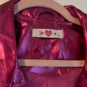 Shine in style with this vibrant metallic fringe jacket. Perfect for making a statement, this jacket features a bold pink color that stands out. Ideal for adding a touch of flair to any outfit.